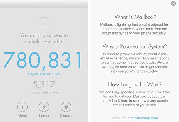 Look at the masterly work of Mailbox, which managed to build up a huge waiting list of over 800,000 people. Their secret? They used a clever user interface to tell people how many others were in front of them and how many were behind them in the line to use the app. This addictive interface gave people a hit of dopamine each time they checked the app and saw they were closer to the front.
